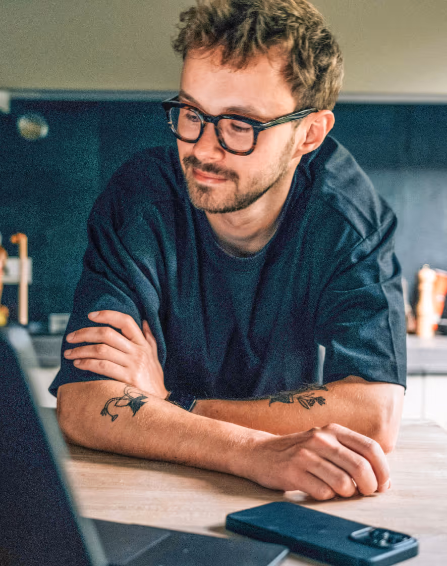 Brent (29) werkt als developer en brengt dus makkelijk 9 uur per dag achter een scherm door. “Na het werk voelde ik me vaak futloos, met droge ogen en hoofdpijn. Ik dacht dat het stress was – of dat ik me gewoon minder goed kon focussen. Tot ik bij de oogzorgspecialist langsging. Mijn zicht was op zich nog goed, maar ik had last van ‘digitale oogstress’ vertelde mijn opticien me. Ik had nog nooit van die term gehoord. Sinds ik een multimediaglas draag met een zachte ondersteuning is mijn zicht op korte kijkafstand veel comfortabeler, en dankzij de filter is ook mijn beeldcontrast veel aangenamer. Geen hoofdpijn meer, en minder snel vermoeide ogen. En ik merk dat ik me ook weer beter kan concentreren.”